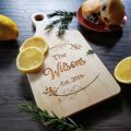 Celebrate your family with the family name themed cutting board. The Kitchen is the heart of the home and what better gift to give than a personalized cutting board. They make great gifts for Weddings, Anniversaries, Housewarming and the Holidays. These sturdy wooden cutting boards are better for your knives and have natural antibacterial properties.