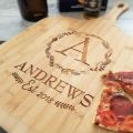Pizza can be both a fun and a classy meal. The classiest way to serve pizza is on an engraved pizza board. Enjoy your favourite flavours on this gorgeous bamboo pizza board. Engrave it with a family name to make an extra special gift. It is perfect for weddings, anniversaries, birthdays, and special events like Valentine's Day or Christmas!