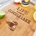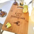 Life is best at your lake. Show your pride with this lovely cutting board. The lake is all about family, friends and good food. This cutting board is a perfect gift to celebrate a new cottage or cabin, a retirement, anniversary, or as a special holiday gift. Personalize with your lake name for a one of a kind gift.