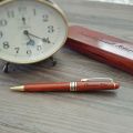 Lead pencil and twist pen in maple wood case. The font used on the sample is Bickley Script.