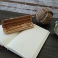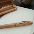 Lead pencil and twist pen in maple wood case. The font used on the sample is Bickley Script.