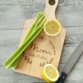 Show Mom how much you appreciate and love her with this personalized solid wood cutting board. The beautiful mom inspired designs make this board the perfect accent piece for any kitchen. The natural antibacterial properties of wood make it an amazing gift for your mother.