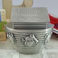 This beautiful pewter finish Noah's Ark money box is the perfect keepsake for a special occasion and the perfect way to encourage saving. This money box is shaped like Noah's Ark. The little ones will love the cute animals looking out from the portholes on the side of the ark. A great gift for baptism, christening, new baby, shower gift, ring bearer or a child's birthday.