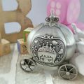 Make A Wish! This pumpkin carriage money bank is a wonderful keepsake for the little person in your life. It is perfect for baby showers, new babies, first birthdays or flower girls. Surprise the little princess in your life with this sweet little gift. Made of non-tarnishing pewter.