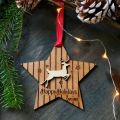 Personalized with your custom engraving the Star Reindeer Christmas Ornament makes the perfect keepsake that will be hung on the tree with love year after year.