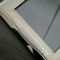 Frame your photo with elegance in the Sofia frame. The contrast of satin silver and polished chrome enhance any photo. This 8x10 frame can be personalized with a special message to become a lasting keepsake. Please let us know if you would like the frame engraved to hold a landscape or portrait photo in the special order instructions.